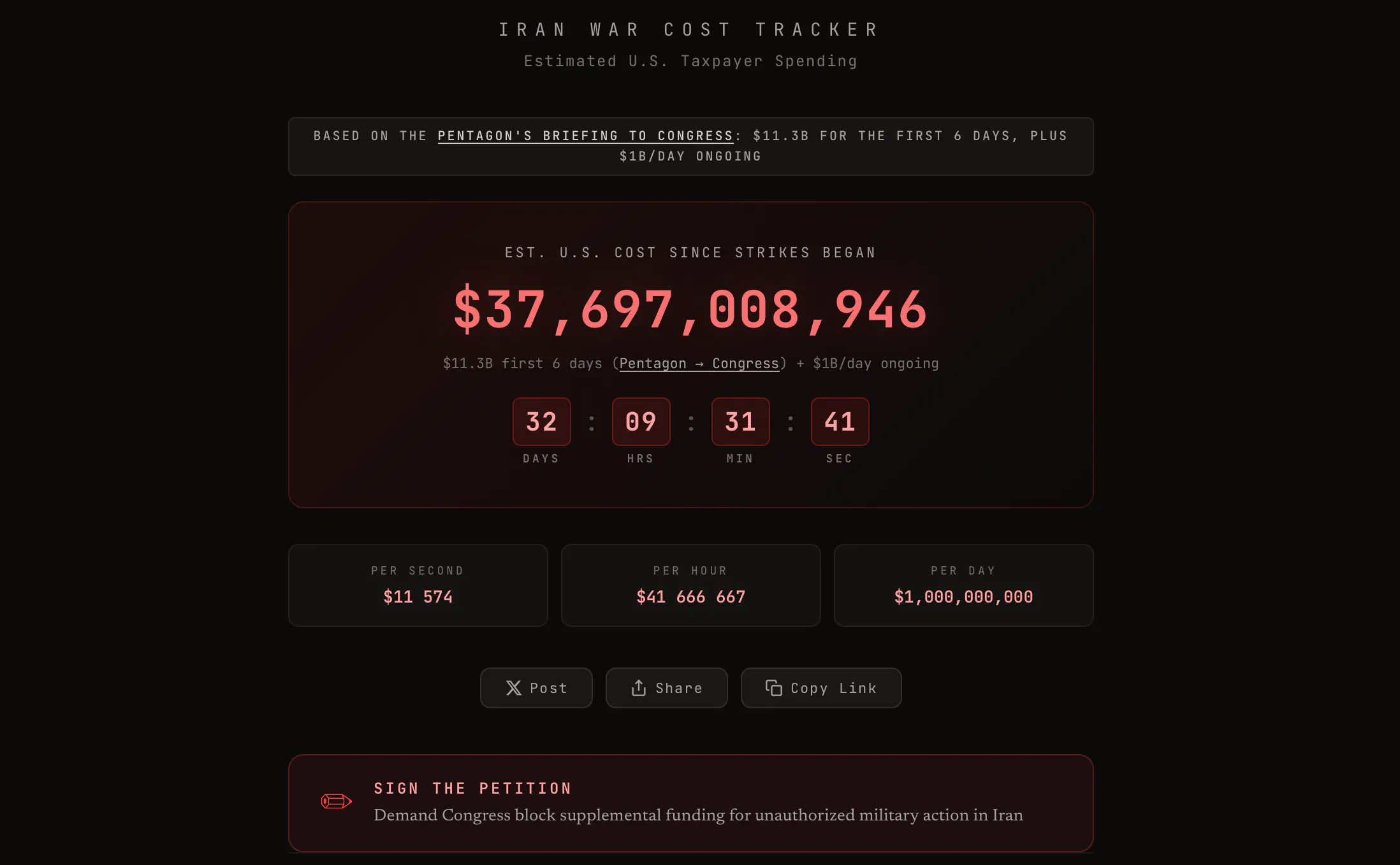 В случае задействования сухопутных войск потери с двух сторон будут в разы больше, чем при одних воздушных атаках. Очевидно вырастут и затраты. В первые дни конфликта в сети был запущен сайт под названием Cost of the Iran War с бесперебойно крутящимся счетчиком, он аккумулирует данные о расходах США на войну в Иране. На момент написания этого текста потрачено уже $37 млрд. Каждый следующий час обходится еще в $41,6 млн, каждая секунда — в $11,5 тысяч. Данные приблизительные и посчитаны на основе открытых источников. Но уровень затрат в любом случае высокий, а после возможного начала наземной операции вообще улетит куда-то в космос.