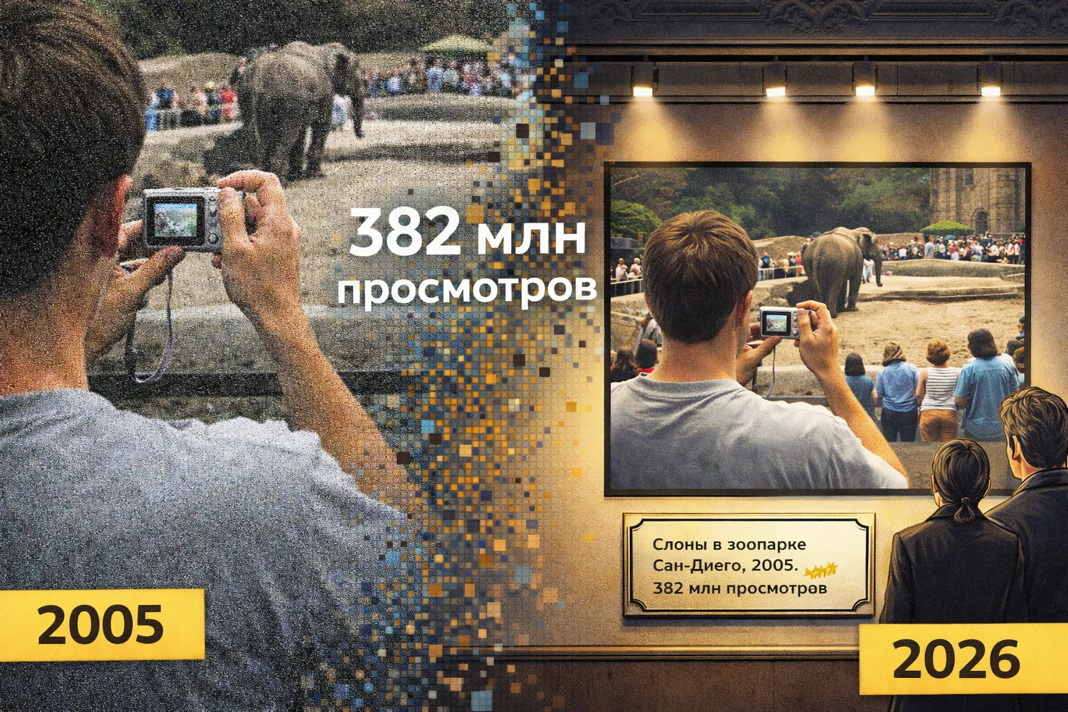 Дизайнеры воссоздали первую страницу YouTube 2005 года с роликом «Я в зоопарке» и выставили в английском Музее Виктории и Альберта. Об этом сообщили представители музея в соцсети X.